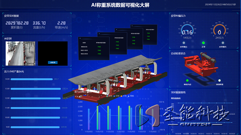 圣能科技礦用防爆皮帶秤配備了遠(yuǎn)程監(jiān)控系統(tǒng),防爆皮帶秤儀表可接入到工業(yè)網(wǎng)絡(luò),完成數(shù)據(jù)傳輸和共享。礦井管理人員可在地面即時(shí)查看煤炭輸送系統(tǒng)的皮帶秤運(yùn)行、計(jì)量數(shù)據(jù)和生產(chǎn)量報(bào)表,打破了以往信息滯后問(wèn)題。另外一方面,圣能科技打造的AI皮帶秤智能管理系統(tǒng)可3D拓?fù)淠P驼故酒С舆\(yùn)行、輸送帶物流、在線校準(zhǔn)、皮帶糾偏、現(xiàn)場(chǎng)視頻和生產(chǎn)量分析圖,使礦井煤炭輸送、計(jì)量可視化。